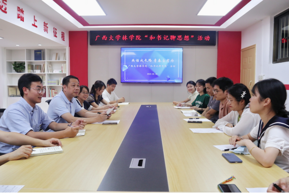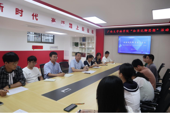 “大家就业进展如何?有没有遇到什么困难?”覃书记逐一了解研究生们的就业进展和实际困难。“林场和选调生是我目前的选择,也是我最难的一个抉择。”2023届风景园林研究生吕佳峻提出了自己的困惑。覃书记鼓励他说,我们是3044永利集团的研究生,我们肩负着乡村振兴的重任,人生只有一次青春,青春就应该拿来奋斗。我们林科学子更应该继承“自找苦吃”的精神,只有吃过苦,才能真的懂得了什么叫实际,什么叫实事求是,要坚持多学多干,多到艰苦的地方锻炼自己。2023届生态学研究生梁嘉玲表示自己一心想扎根防城建功立业的决心,但是很遗憾没有考上选调生。但是她会在西部计划、三支一扶的报考中继续努力。其他同学们也畅所欲言,覃宪儒书记结合当前员工关心的“职业选择”、“职业发展”“应试技巧”等问题进行一一讲解与答疑,让同学们能够更好地结合自身实际特点将个人理想追求融入党和国家的发展事业中去。覃书记强调,大家是与新时代共同前进的一代,更是新时代的亲历者、见证者和奋斗者,希望大家牢记党的嘱托,不辱使命、不负时代,脚踏实地,学好本领,立志做有理想、敢担当、能吃苦、肯奋斗的新时代好青年,让青春在全面建设社会主义现代化国家的火热实践中绽放绚丽之花。