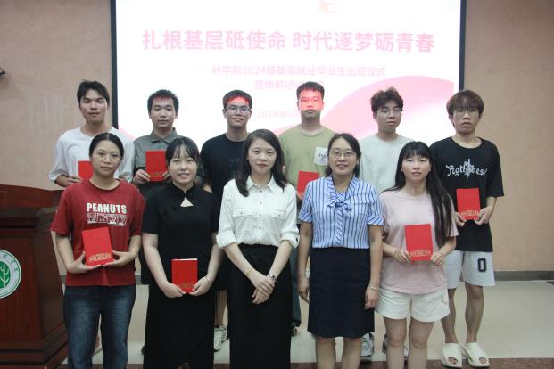 6月21日下午,公司于112报告厅开展了2024届基层就业毕业生出征仪式暨岗前培训交流会。公司党委副书记徐丽老师、广西国有雅长林场工会主席刘晓璐及2024届赴基层就业毕业生代表出席了仪式,本次会议由院团委书记李琼莹老师主持。