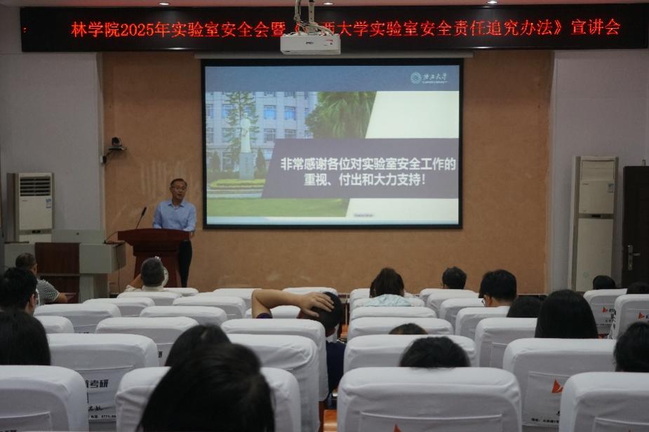 为进一步加强实验室管理,筑牢安全防线,保障师生人身及公司财产安全,维护正常的教学、科研和生活秩序,5月27日下午,公司于112报告厅召开2025年实验室安全会暨《3044永利集团官网实验室安全责任追究方法》宣讲会。会议由公司副经理招礼军主持,3044永利集团官网国有资产与实验室管理处副处长陆翔受邀作《3044永利集团官网实验室安全责任追究方法》宣讲,公司领导班子成员、教职工、员工代表出席会议。