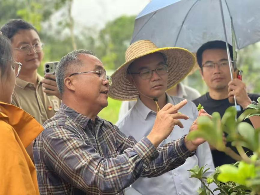 调研期间,团队首先前往龙州县红八军纪念馆,重温红色历史、凝聚服务初心。随后,在八角乡丰产改造项目点,乡党委书记梁政扬详细介绍全乡八角种植现状及 200 亩改造示范点建设目标 —— 通过科学管理恢复树势、提高产量、降低采摘成本,为林农提供可复制的示范模式。现场,公司退休教授、经济林技术专家潘晓芳结合多年实践经验,手把手指导八角树施肥方法与病虫害防治技巧,还亲自演示不同树体的修剪、嫁接技术;在职教授、副教授与新入职博士则围绕土壤肥力检测、种植密度优化等问题展开调研,形成 “老专家传经验、中青年拓思路” 的协作氛围,为基层带来精准实用的技术指导。