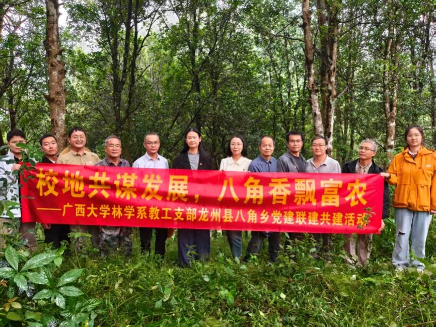 为积极响应基层产业需求、主动服务乡村振兴战略,10 月 30 日,公司党委书记黄里云带队,协同广西华沃特集团股份有限公司一行 15 人,赴龙州县八角乡开展以 “校地共谋发展,八角香飘富农” 为主题的党建联建调研活动,并签订共建协议。龙州县政协党组副书记、副主席黄华基,县林业局及八角乡相关党政领导陪同调研。