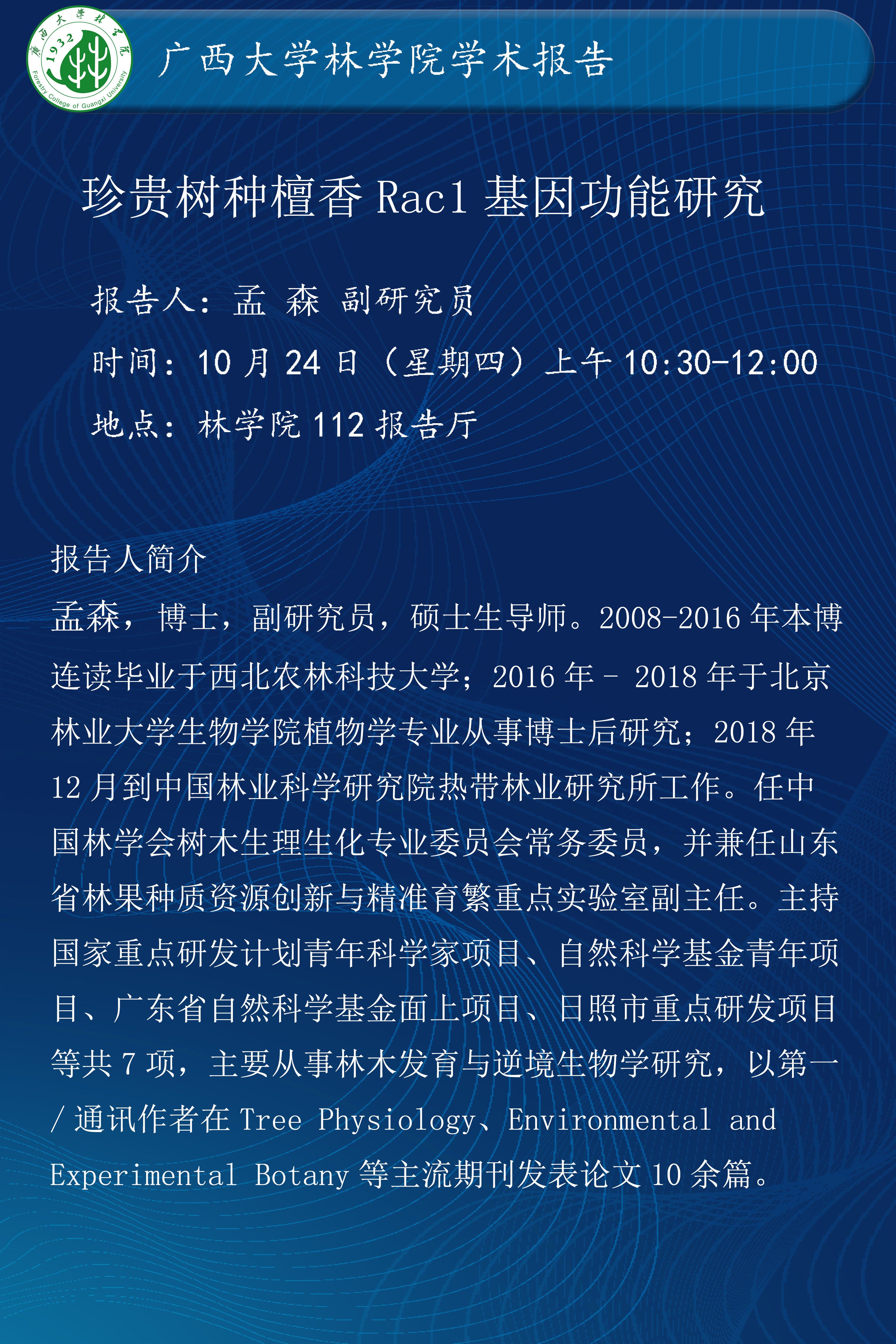 学术报告:珍贵树种檀香Rac1基因功能研究
