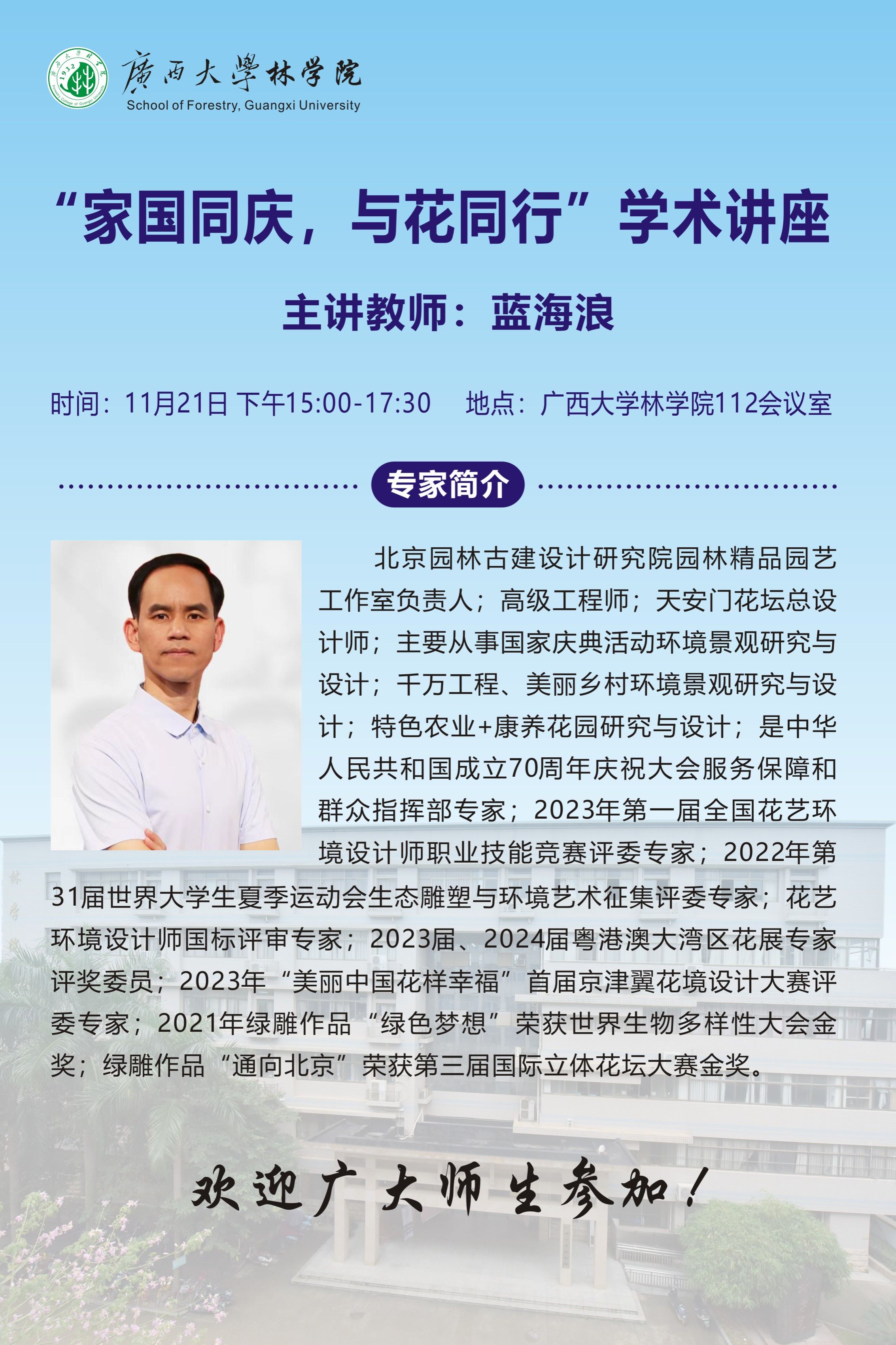 学术报告:“家国同庆,与花同行”学术讲座