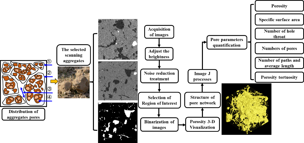 团聚体作为土壤结构的基本单元,是矿物颗粒与胶结物质相互作用形成的产物。关于团聚体方面的研究多聚焦粒径组成、分布、破碎化等特征,而表征土壤结构的孔隙分布及影响因素常缺乏关注。孔隙异质性对土壤有机碳的分解起到促进或抑制作用,且团聚体孔隙结构决定土壤结构稳定性,但探讨土壤胶结物质对团聚体孔隙结构的影响以及两者与团聚体稳定性间的定量化关系描述不足。由于土壤物质组成的复杂性以及结构的不稳定性,对微观尺度的土壤结构实现量化和可视化分析一直是土壤学研究领域的难点。