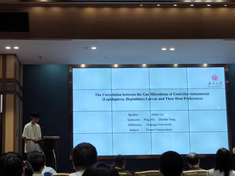 公司博士研究生鲁进韬受邀参加2024年“中国-东盟林业科学论坛”学术交流活动,以“桉蝙蛾幼虫肠道微生物与寄主取食偏好的相关性(The Correlation between the Gut Microbiota ofEndoclita signifer(Lepidoptera, Hepialidae) Larvae and Their Host Preferences)”论文为主题进行学术报告,与参会人员开展了深入交流与讨论,并在报告评比中获得“优秀报告奖”。