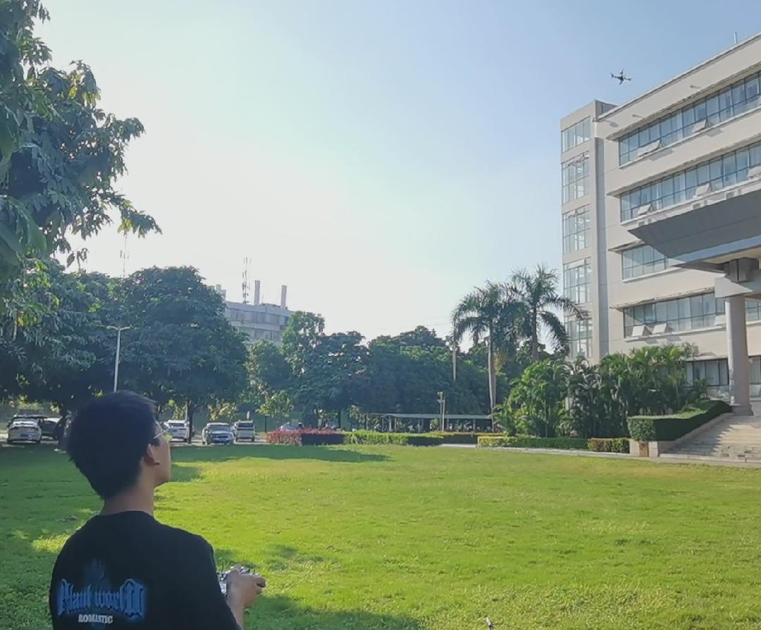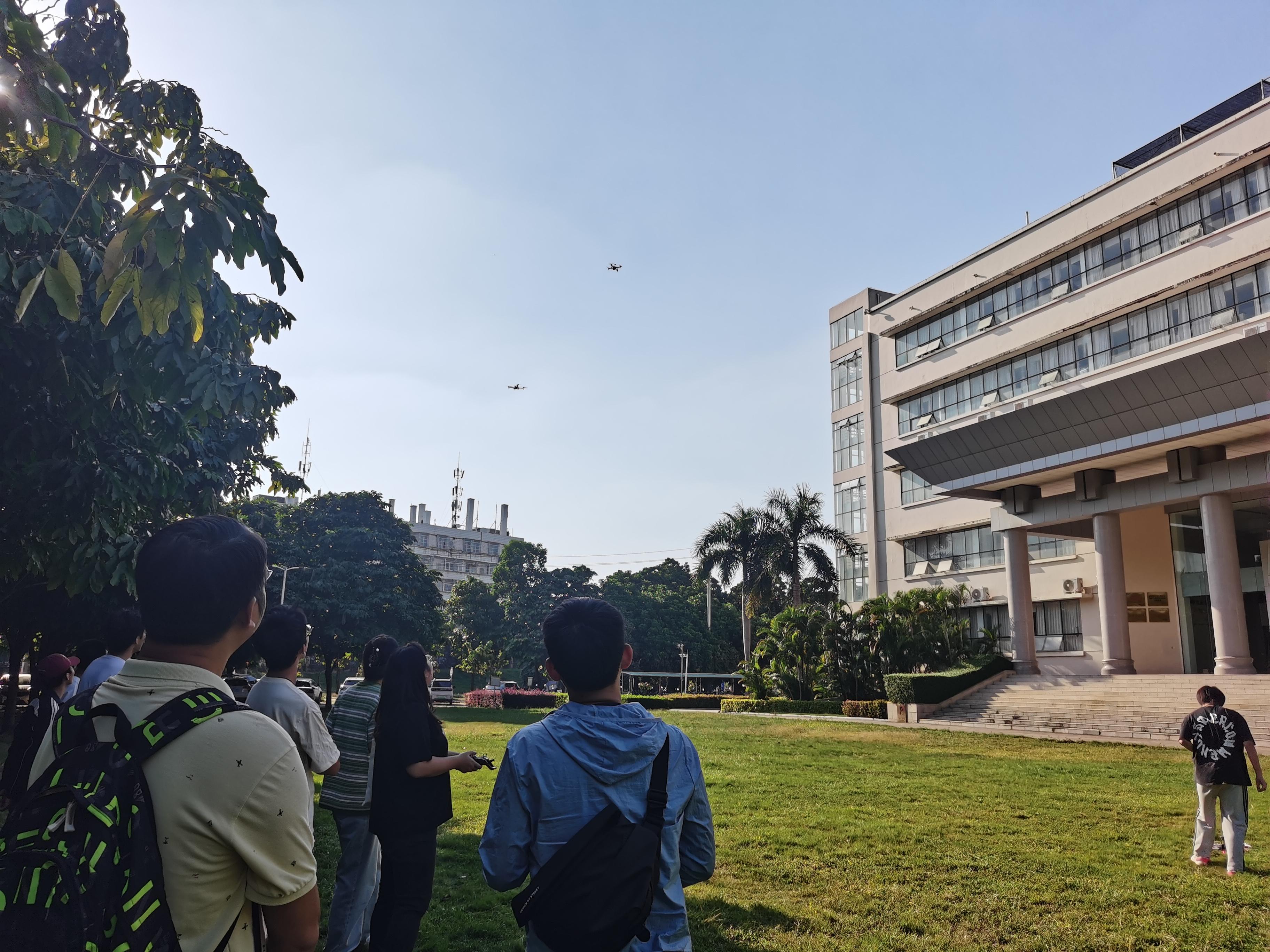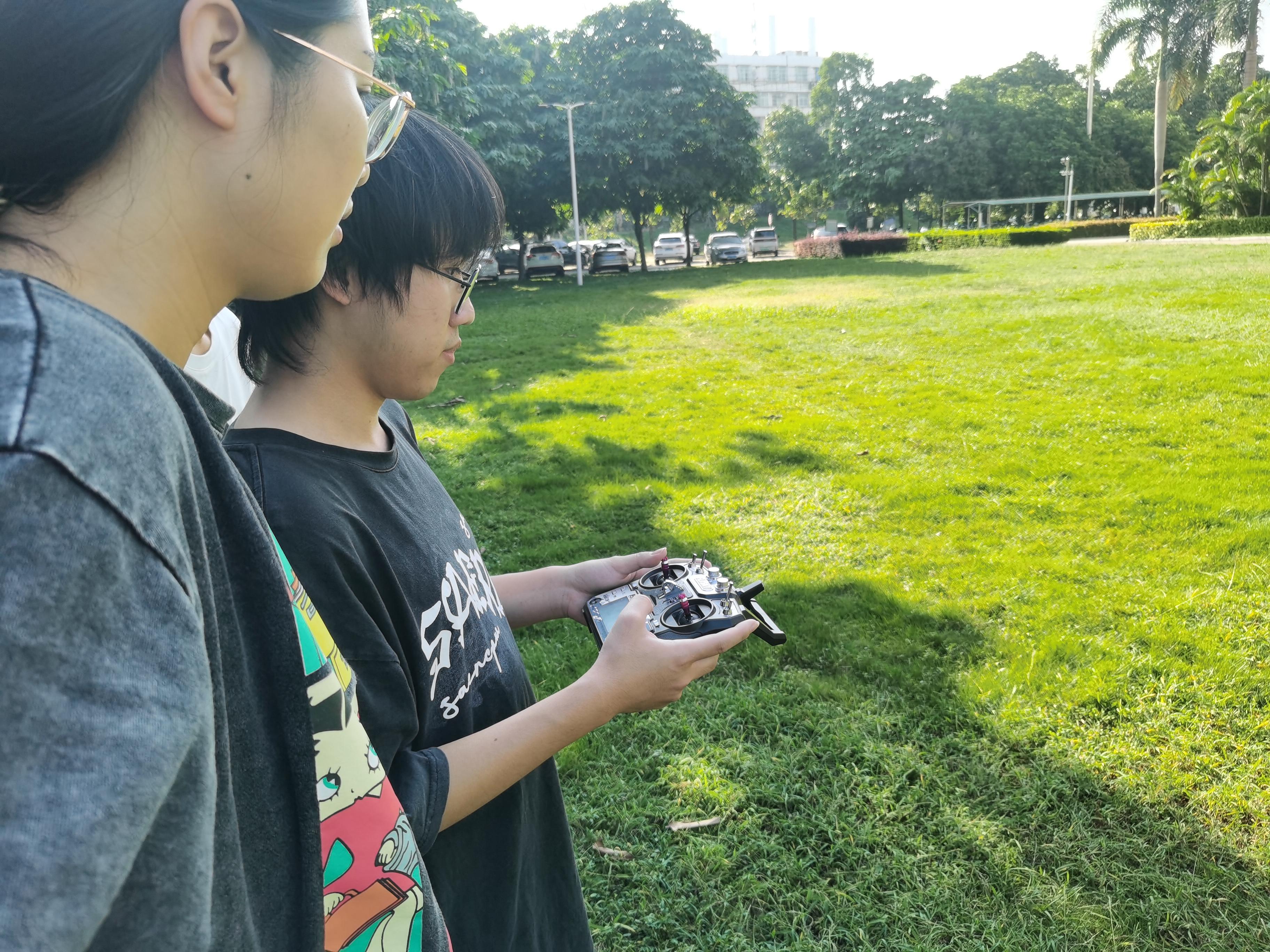 在试飞前,由林学211班甘多向参加活动的成员讲解了无人机的基本操作和安全注意事项。随后,成员们分成小组,苏凯老师作为无人机兴趣小组的指导老师,带领小组成员仔细检查无人机的各个部件,确保它们完好无损。在小组成员和老师的努力下,无人机缓缓升空,成员们通过遥控器上的遥感尝试着各种动作。